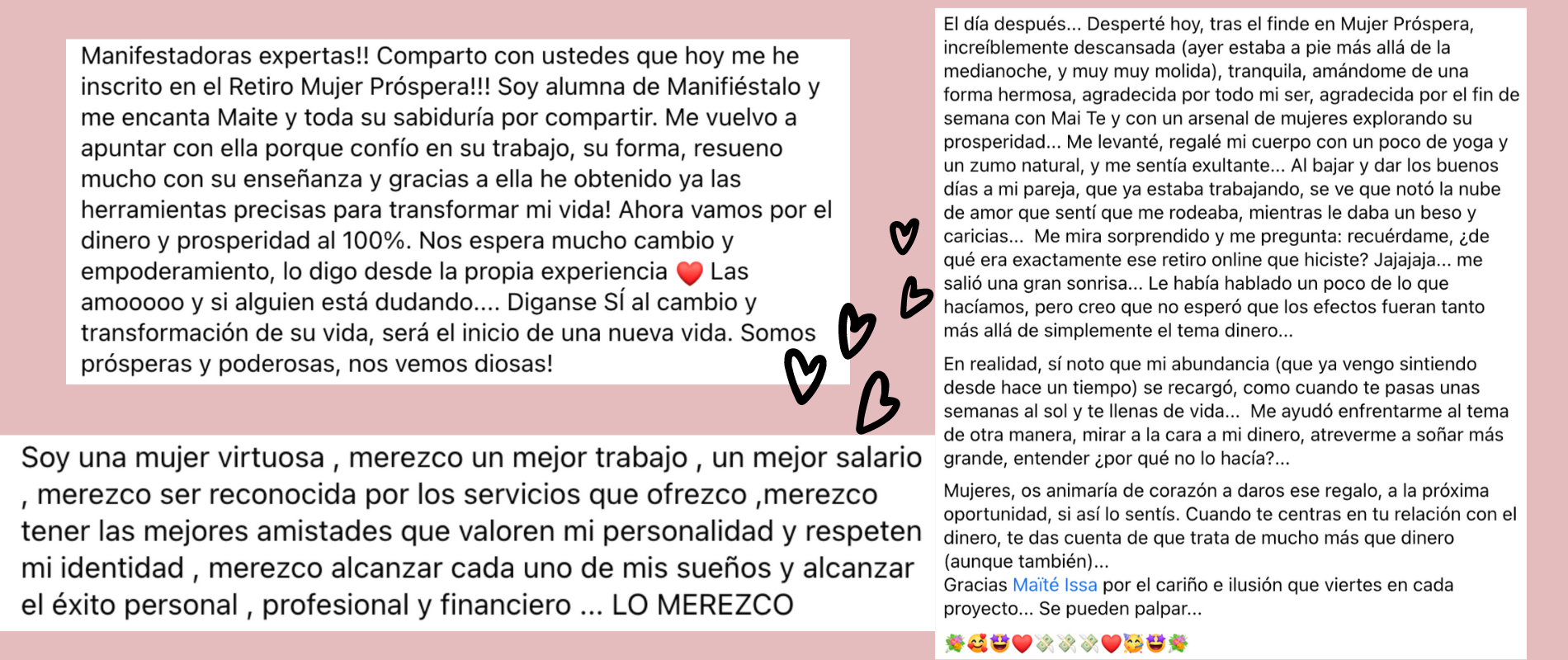 En los últimos años he acompañado a más de 3000 mujeres a transformar su vida, y dedico cada minuto de mi existencia a ayudarlas a usar la manifestación para conseguir lo que siempre ha sido suyo: la abundancia, el amor, el éxito y la felicidad.